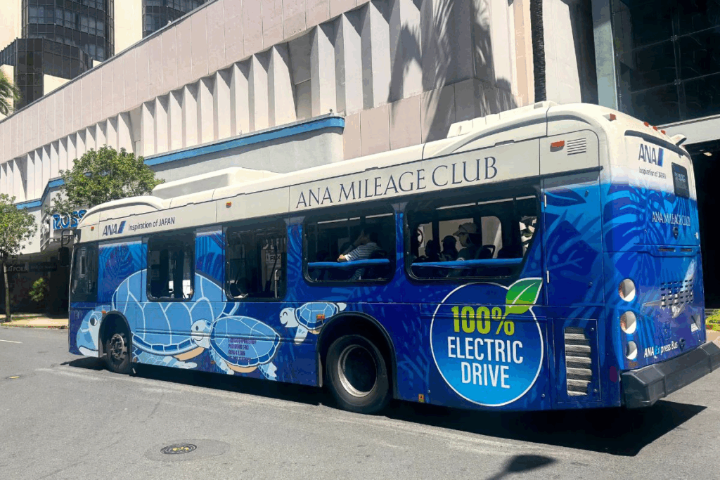 マイルで旅行できるほど飛行機に乗るとも思えないけれど、ポイントが貯まる感覚でいいじゃないですか。それと、ANAの電気バスがワイキキ→アラモアナショッピングセンター間を運航していたり(去年全然気付かなかった…。)、ラウンジが使えたりするので便利です。